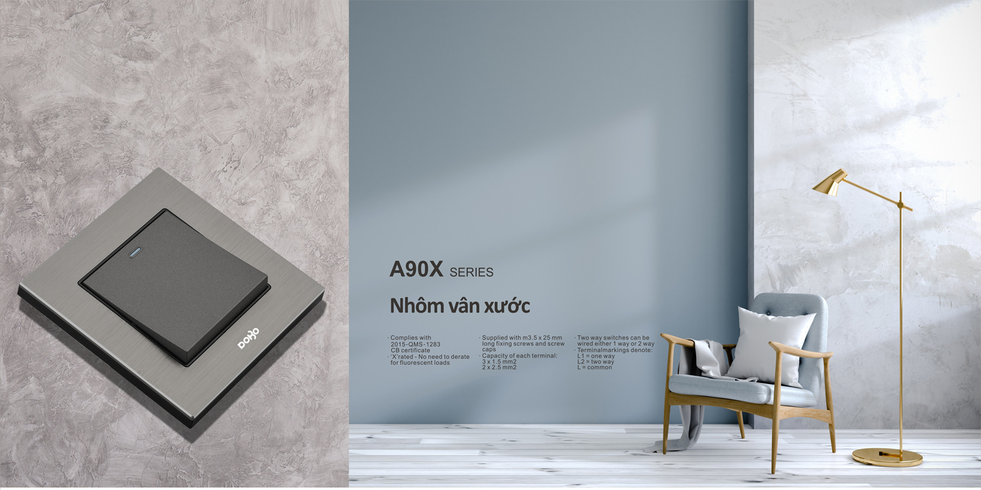 Dòng công tắc Seri A90 Luxury là dòng chuyên biệt cho biệt thự, chung cư cao cấp, hotel.. Sản phẩm đạt tiêu chuẩn xuất khẩu EU, tiêu chuẩn bảo vệ môi trường, không chất độc hại RoHS.