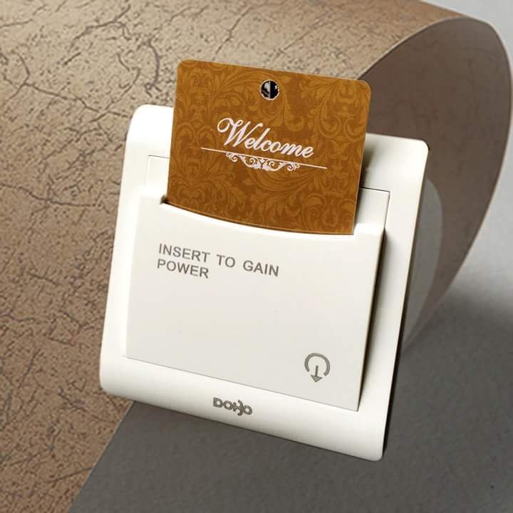 Công tắc thẻ từ khách sạn được hoạt động dựa trên cơ chế nhận dạng chip cảm ứng bên trong của thẻ. Trong công tắc chứa sẵn bộ chip đọc thẻ RFID để nhận biết thẻ, khi chúng ta cắm đúng loại thẻ cảm ứng cùng tần số thì lúc đó mới sử dụng được điện bên trong phòng.