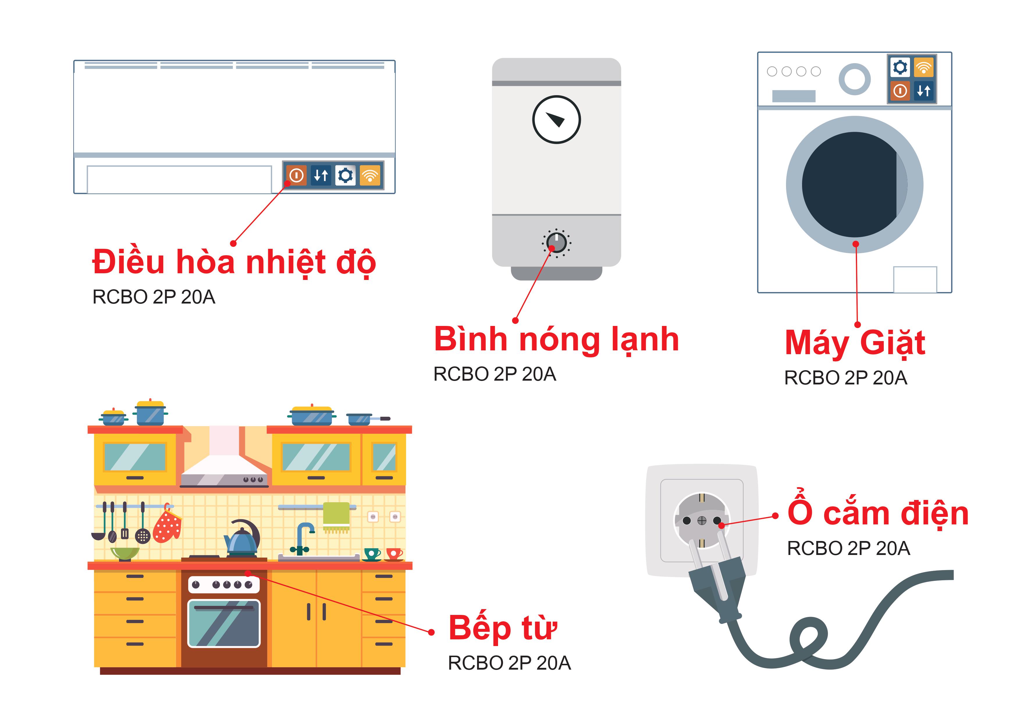 (Lựa chọn những loại như sau: MCB1P/20A; MCB 2P/20A; MCCB 2P/20A)