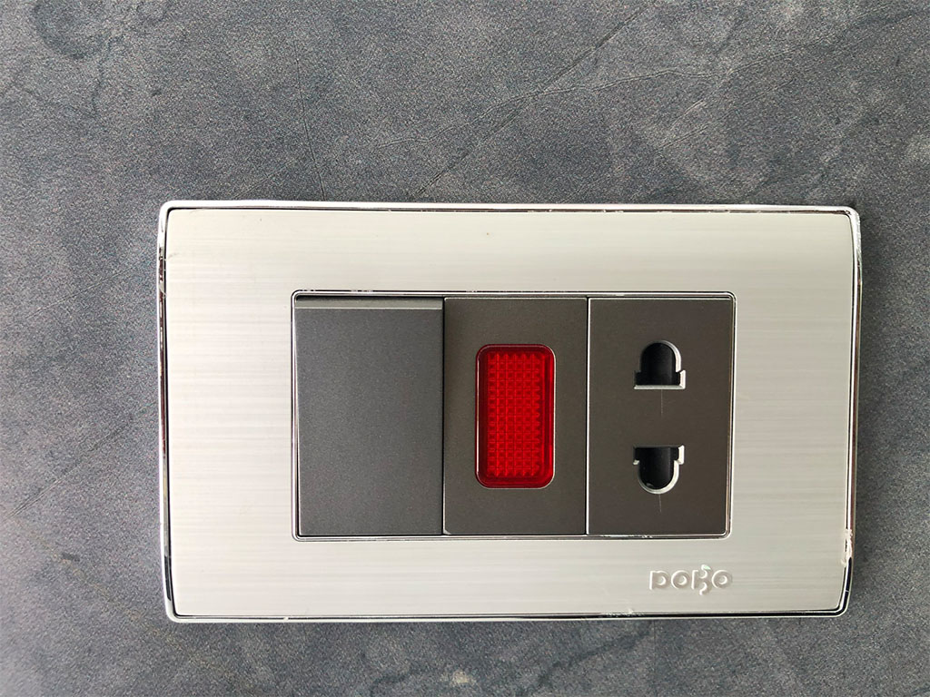 - Sang trọng và ấn tượng khi có dạ quang phản chiếu ở nút công tắc giúp khách hàng dễ dàng bật tắt thiết bị khi trời tối, ngoài ra công tắc được làm từ chất liệu nhựa chống cháy màu xám đậm, đem lại thẩm mỹ cao cho người sử dụng.