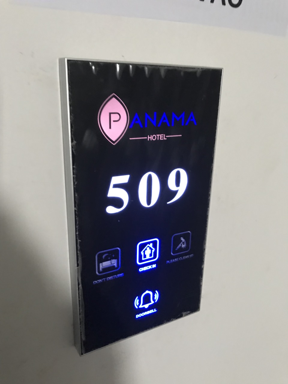 Bên cạnh đó là Biển số phòng và mặt lắp thiết bị có in logo của Khách sạn, làm tăng thêm ấn tượng và độ nhận diện cho KS nơi đây.