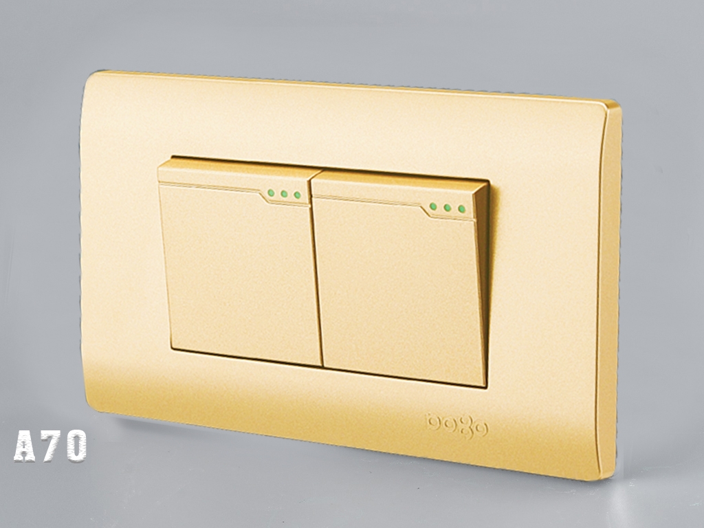 - Seri A70 được thiết kế trên chất liệu Nhựa PC(Polycarbonate) chống cháy,sơn tĩnh điện màu vàng shampanh.